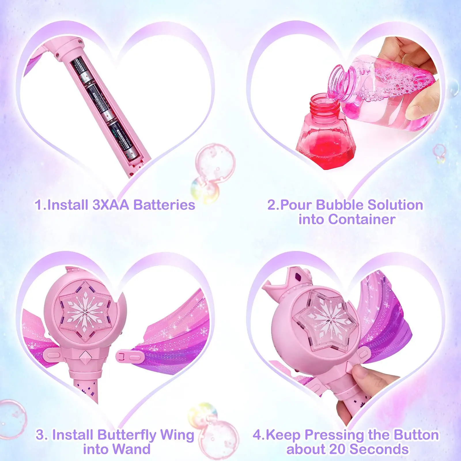 Comes with detachable wings—attach them to create a cute butterfly, or remove them for a stylish bubble wand look.
